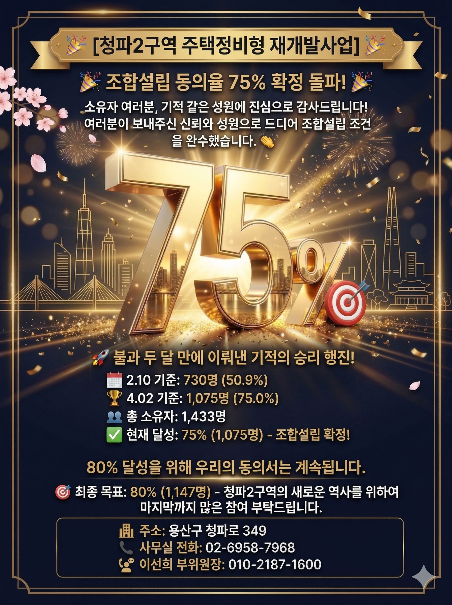 4월 25일로 창립총회 땡겨졌다고 합니다 동의률도 80프로에, 빠른 조합설립 미리 축하합니다.