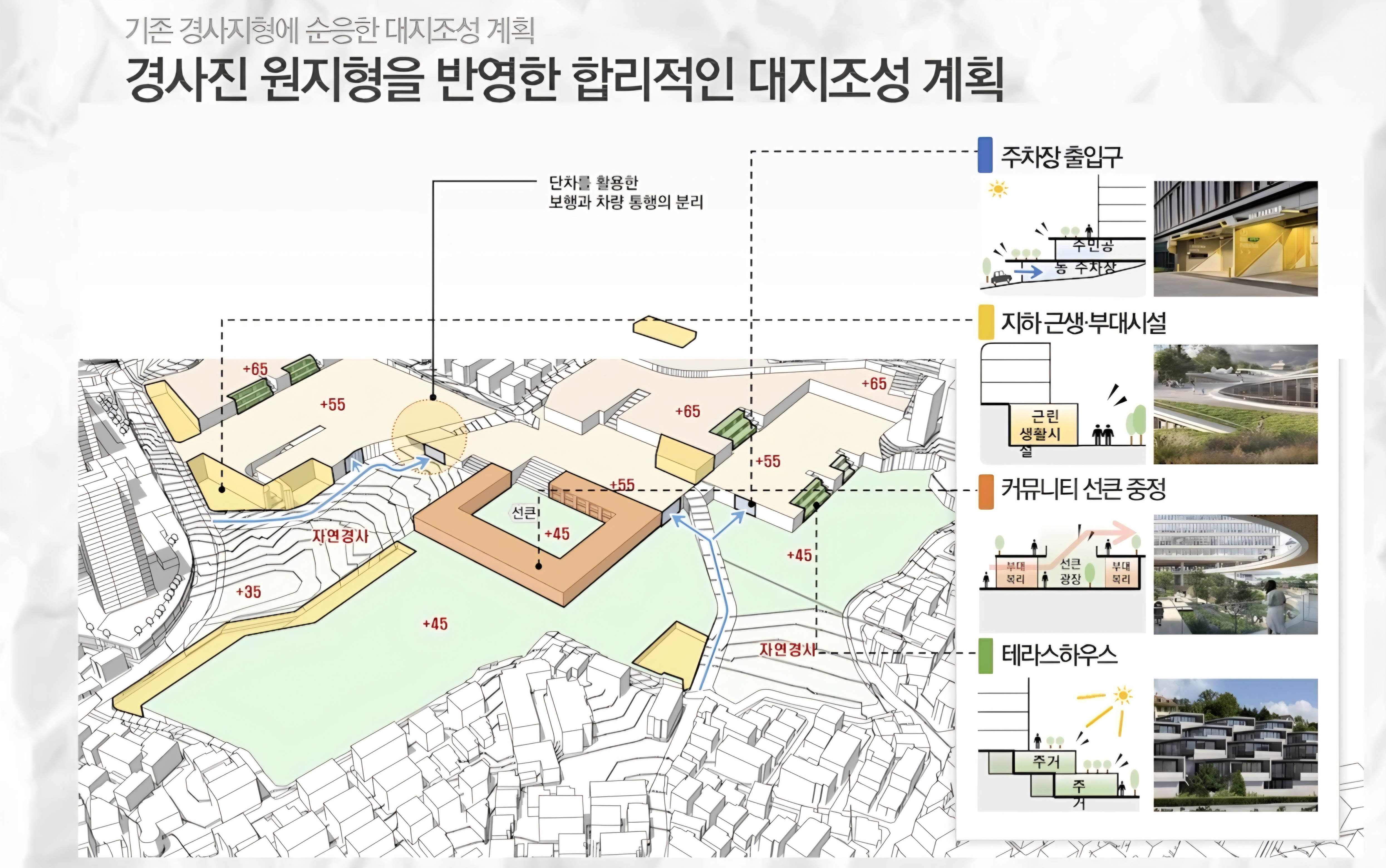 도로로 인해 아파트가 나눠지는 느낌이 들어 뭔가 단절된 느낌이네요~ 지하는 통합인지 궁금하네요.