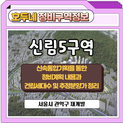 신림5구역 사업추진 배경 ●신림5구역은 서울시 관악구 신림동 412번지 일대로 ●1970년대 주택단지 조성사업으로 형성되어 ●약 74%의 주택 노후도와 제1종일반주거지역이 72%, 최대 60m의 고저차가 있는 구릉지 특성상 개발 주거환경 개선이 필요했던곳으로 ●2022년 신속통합기획 후보지로 지정되면서 역세권·숲세권·수세권 장점을 살린 신속통합기획 재개발 ...
