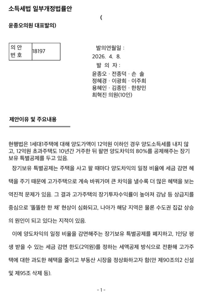 관련기사 “오래 살았을 뿐” vs “고가주택만 혜택”… 장특공제 폐지 법안 갑론을박 장특공제 폐지하는 ‘소득세법 개정안’ 발의 1인당 평생 양도세 감면 혜택 2억원만 현행 제도 고가주택 수익률 높여 집값 상승 폐지하면 고가주택일수록 세금 부담 커져 전문가 “거래 감소 효과…신중한 접근 필요" 장기보 n.news.naver.com 1. 기사의 함의 a. 장특...