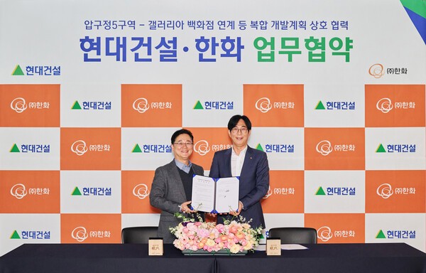 현대건설이 서울 강남구 압구정5구역 재건축 사업을 ‘복합개발’로 확장한다. 현대건설은 지난 26일 서울 강남구 신사동 디에이치 갤러리에서 한화와 ‘압구정5구역 재건축 사업 협력을 위한 업무협약(MOU)’을 체결했다고 27일 밝혔다. 이번 협약은 한화의 계열사와 연계한 상업시설 개발을 통해 차별화된 복합개발 모델을 구현하는 것이 핵심이다. 이를 통해 아파트 ...